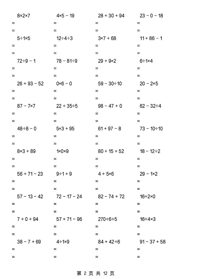 二年级下数学加减乘除混合运算专项许老师2026-02-26更新8254 🔥免费领取夸克网盘1TB空间 ——预览已结束,还剩10页未读——您已获得此文档下载权限,请点击底部下载完整文档 免费资源二年级下数学加减乘除混合运算专项可打印免费下载资源下载资源下载复制密码THE END二年级 点赞54 分享QQ空间微博QQ好友海报分享复制链接