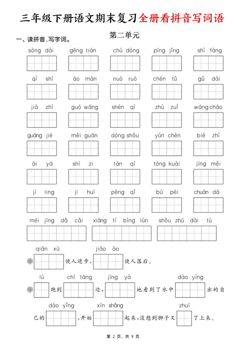 三年级下册语文期末复习全册看拼音写词语(含答案9页)许老师2025-10-03更新1168 ——预览已结束,还剩7页未读——开通会员后可免费下载高清完整文档 免费资源三年级下册语文期末复习全册看拼音写词语(含答案9页)可打印免费下载资源下载资源下载复制密码THE END三年级# 三年级语文# 期末复习# 词语# 拼音 点赞8 分享QQ空间微博QQ好友海报分享复制链接